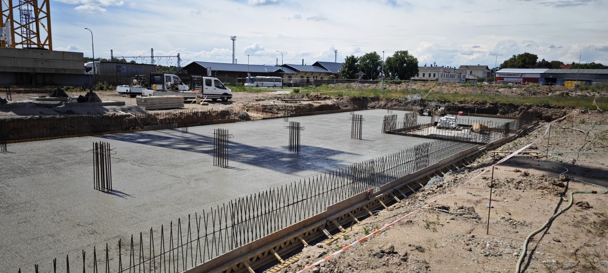 18.07.2024 dokončena betonáž nosných stěn a sloupů 1.PP včetně beonáže stropní desky
