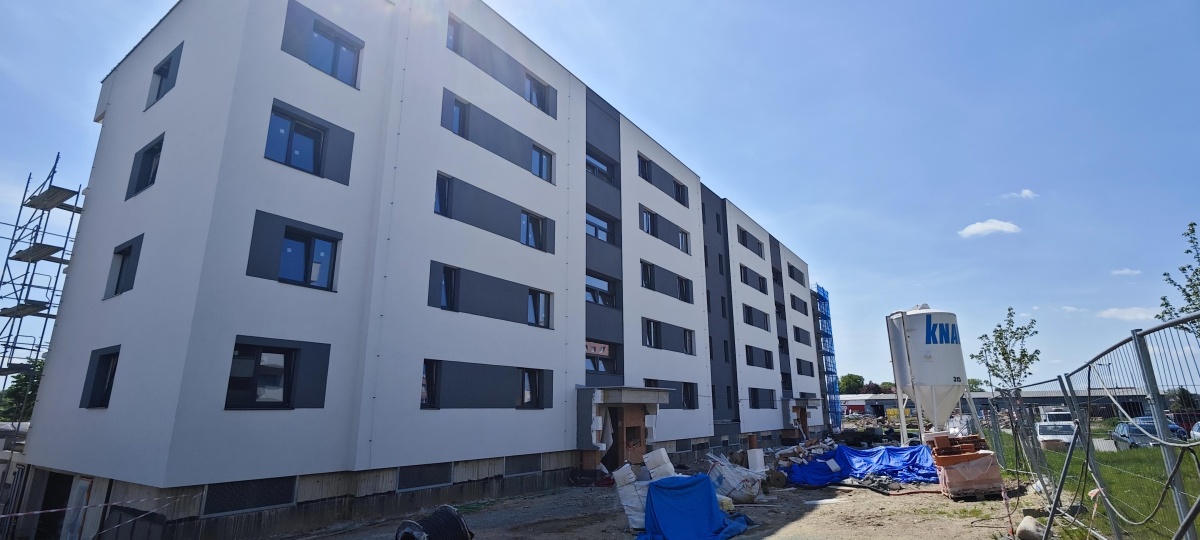 06.06.2025 dnešního dne byly dokončeny omítky v bytovém domě