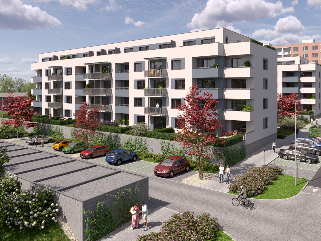 Váš sen o bydlení si můžete splnit v jednom ze čtyř nových bytových domů, mezi kterými můžete trávit chvíle odpočinku a relaxace v pestré zeleni, skýtající spoustu rozmanitých zákoutí. Soukromé místo pro zaparkování přímo před domem Vám ušetří čas a poskytne jistotu volného místa pro Vás nebo Vaši návštěvu.
